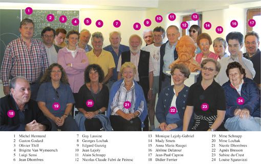 Mady Smets, Georges et Michou Lochak, Jean et Monique Lejoly, Michel Hermand, Edgar Gunzig, Jean-Paul Capron, Delphine Dhombres, et des Peyrescans. |